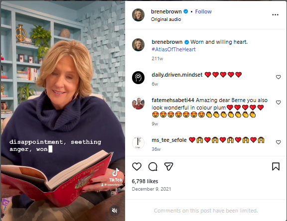 Live streams and short videos are driving engagement across platforms like LinkedIn, Instagram, TikTok, and YouTube. Video helps your audience hear your voice and see your mannerisms, which builds familiarity faster than text alone. Brené Brown uses this quite strategically on her Instagram.