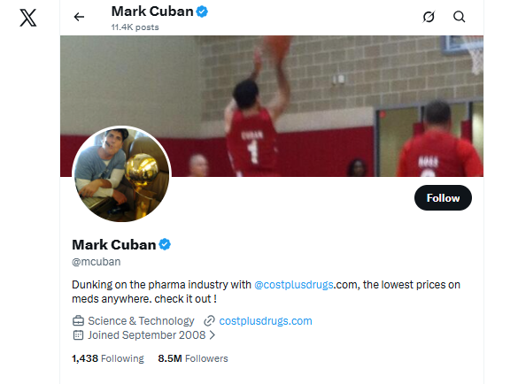 Most strong personal brands today grow from one main channel, then spill over elsewhere. That core platform becomes home base. Other social media platforms act as supporting channels that point back to your main platform or reinforce your ideas. For example, Mark Cuban’s main channel is his X account, where has amassed an audience of nearly 8.5 million.