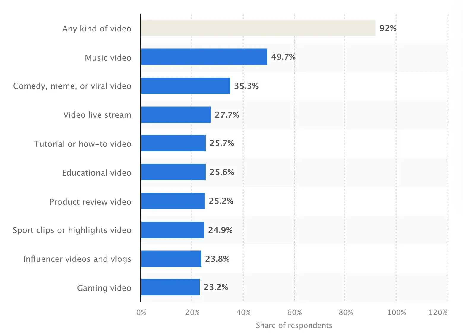 According to Statista, 92% of online users are open to watching video content in general, and a significant portion specifically prefer videos that teach them something, like how-to walkthroughs and educational content.