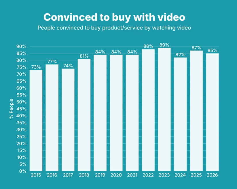 This is Conversion Optimization in disguise. 85% of consumers say they were convinced to buy a product or service after watching a video about it. This shows a strong influence of video content strategy for B2B brands on actual buying behavior!